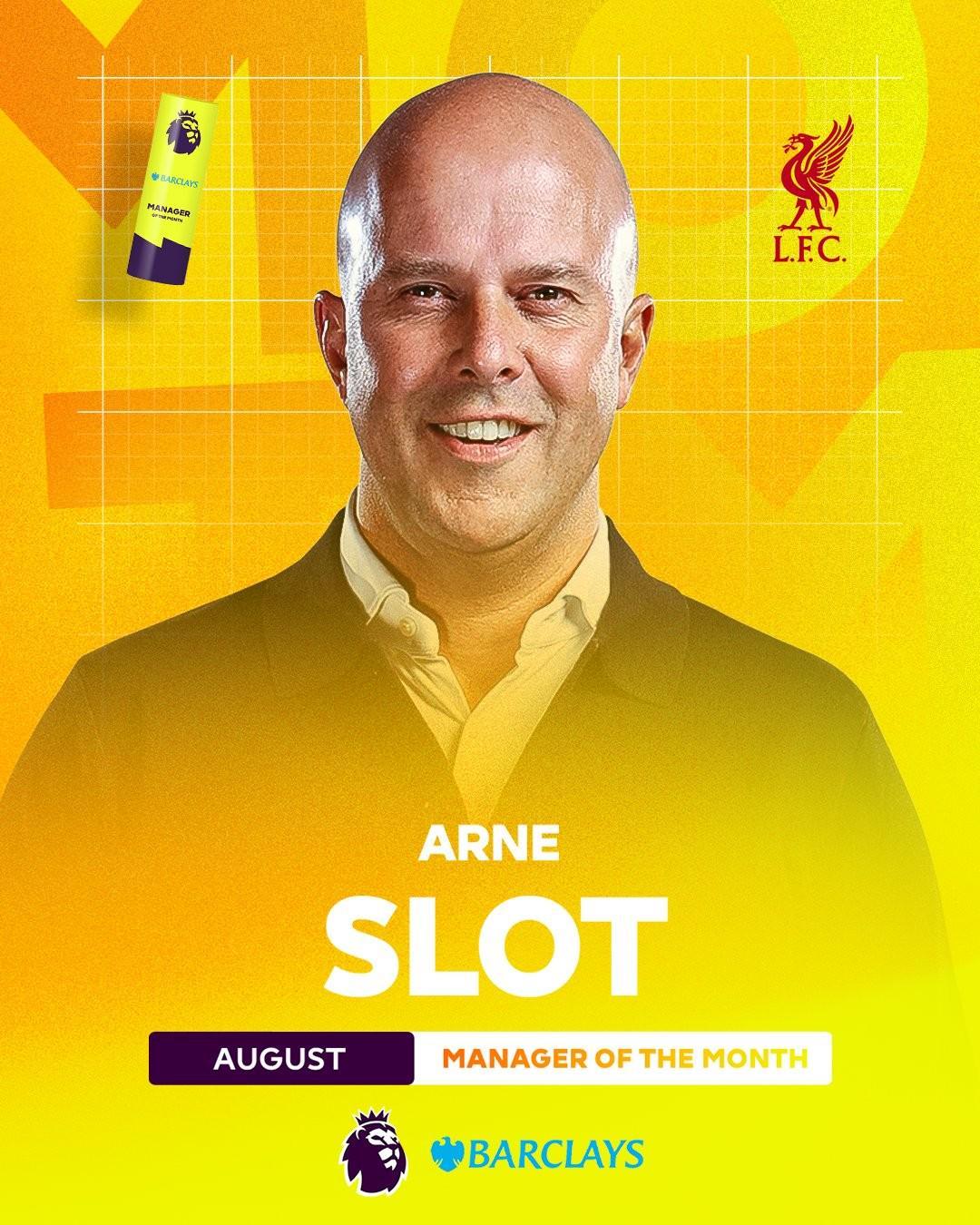 如今英超官方确认,斯洛特成功当选新赛季首月的最佳主教练。