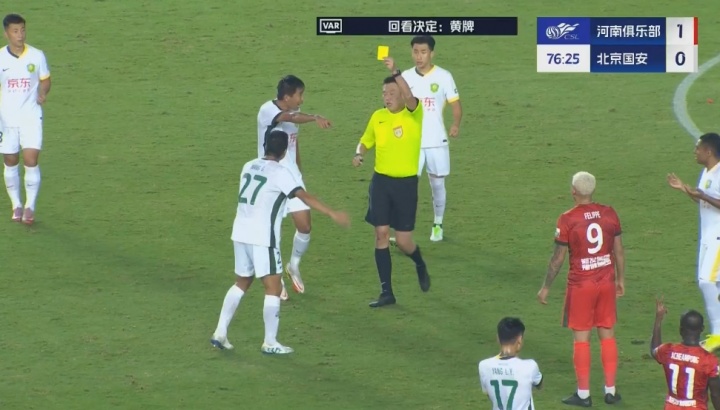 王刚无球状态下击打卡多索面部,主裁判看过VAR后处以黄牌警告 xiaoqiao 2026-01-26 德甲 29 0 09月12日讯 中超第24轮,河南vs国安。比赛第77分钟,王刚无球状态下击打卡多索面部,主裁判看过VAR后对其处以黄牌警告。
