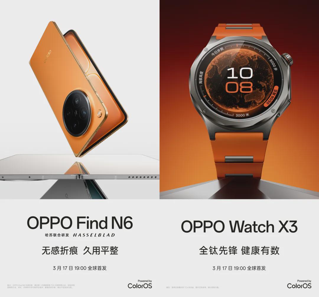 首先上市时间,OPPO已经官宣,Find N6将于3月17日晚上19:00,正式全球首发。