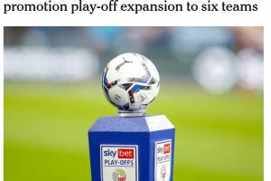 体育资讯09月11日讯 据The Athletic报道,EFL考虑英冠升级附加赛再增设一轮,参赛队伍扩军至6支。